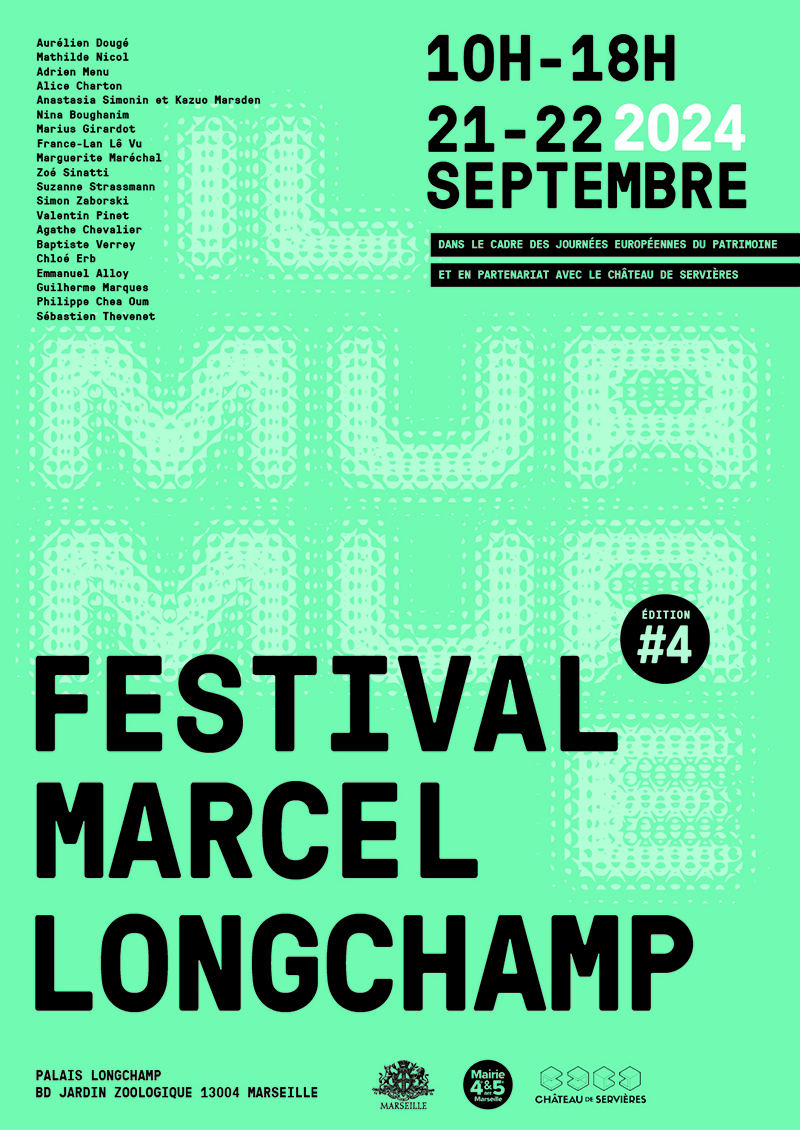 Chaque année, dans le cadre des Journées Européennes du Patrimoine, la Mairie des 4ᵉ & 5ᵉ arrondissements, en partenariat avec le Château de Servières, organise le festival d’art contemporain Marcel Longchamp.