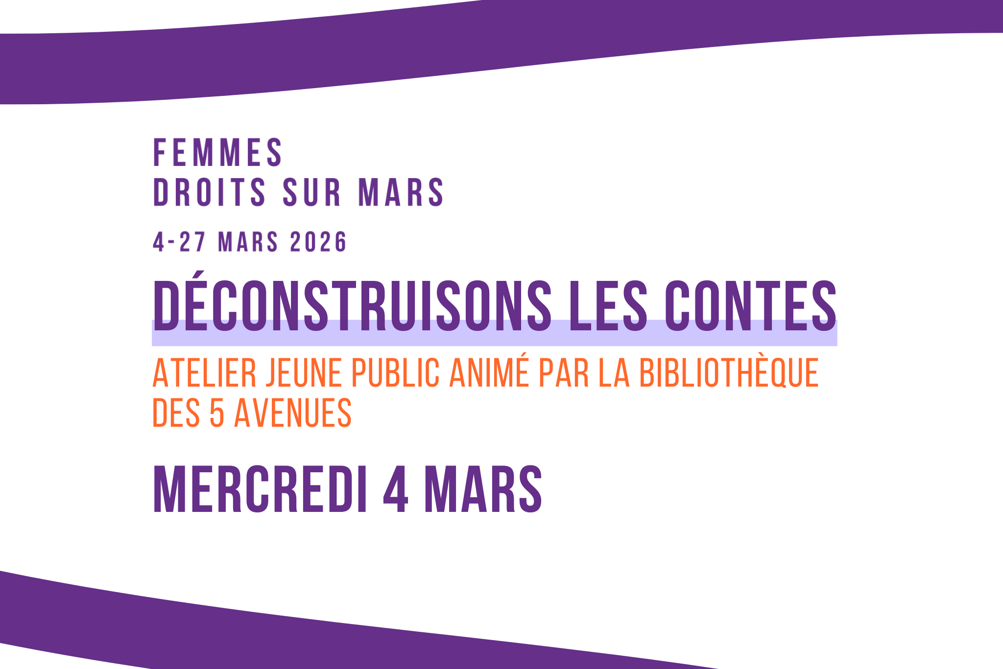 Animée par la Bibliothèque des 5 Avenues, cette séance alternera temps de lecture, échanges et activités ludiques pour réfléchir autrement aux histoires qui ont bercé l’enfance de nombreuses générations. Un moment à la fois éducatif et créatif, pour encourager l’égalité dès le plus jeune âge.